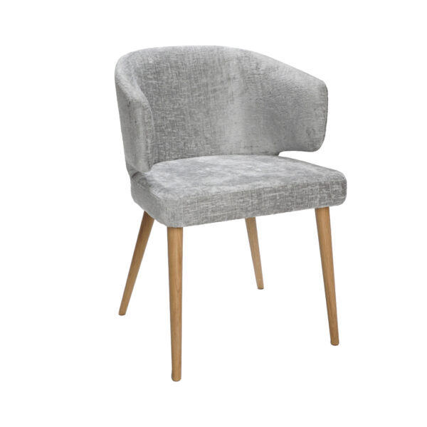 Sedež Stelle, prekrit s sivim blagom, in noge iz masivnega hrastovega lesa, zagotavljajo ne le izjemen videz, ampak tudi vrhunsko udobje. S polovinsko obliko omogoča udobno sedenje, ki je idealno za dolge večerje ali sproščene trenutke ob obedu.